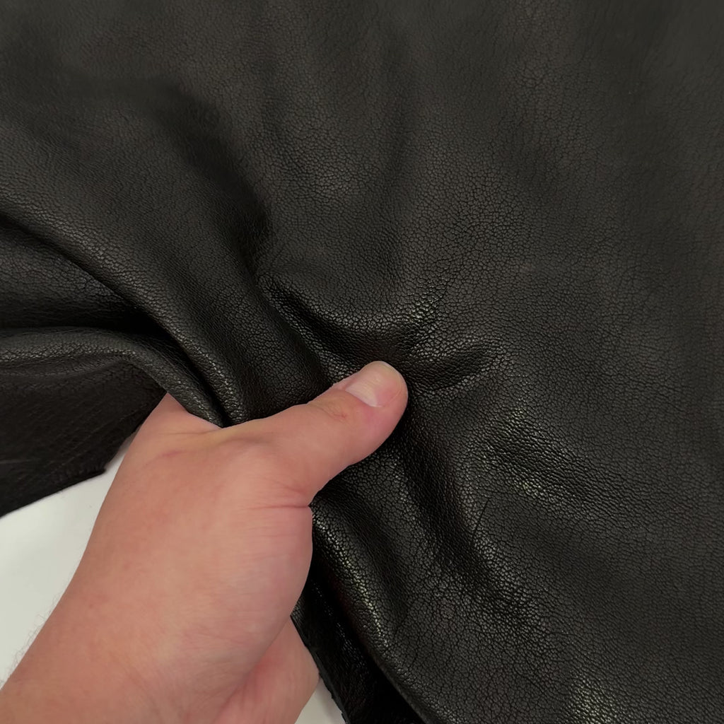 Goat nappa is an industry classic - used around the world primarily for leather jackets, apparel, as trim and lining, and even for soft bags. Our book binders love this quality because it's pliable and easy to work with - skins are on the thinner side and very supple. This particular goat nappa comes feels luxurious to touch and showcases a the beautiful texture of the hide.