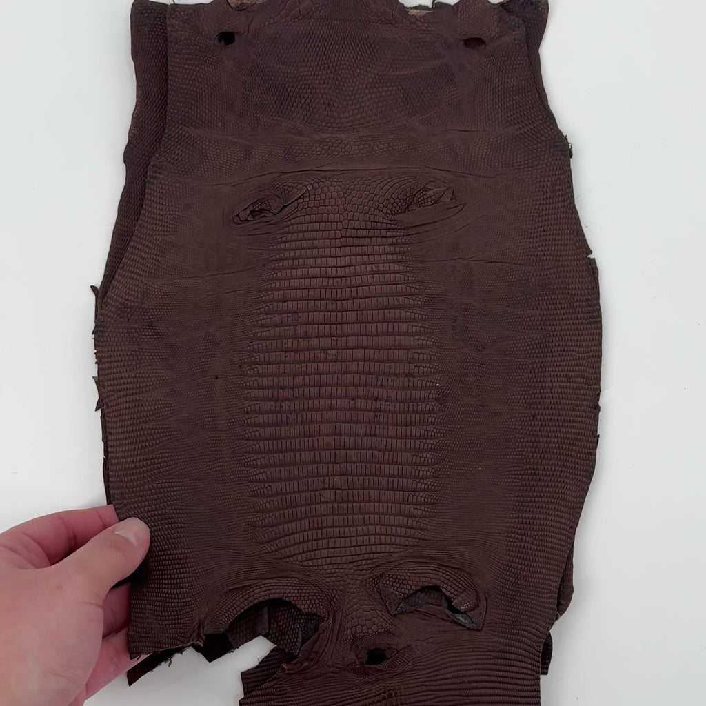 Perfect for eye-catching details and small leather goods, our genuine lizard skins feature a unique texture of intricate miniature tiles that make them super versatile. While thin and pliable, lizard skins are not prone to tearing, making them a great option for hand-stitching applications. Skins can be used for boots, handbags, watch straps, belts, wallets, phone cases, and other types of small leather goods.