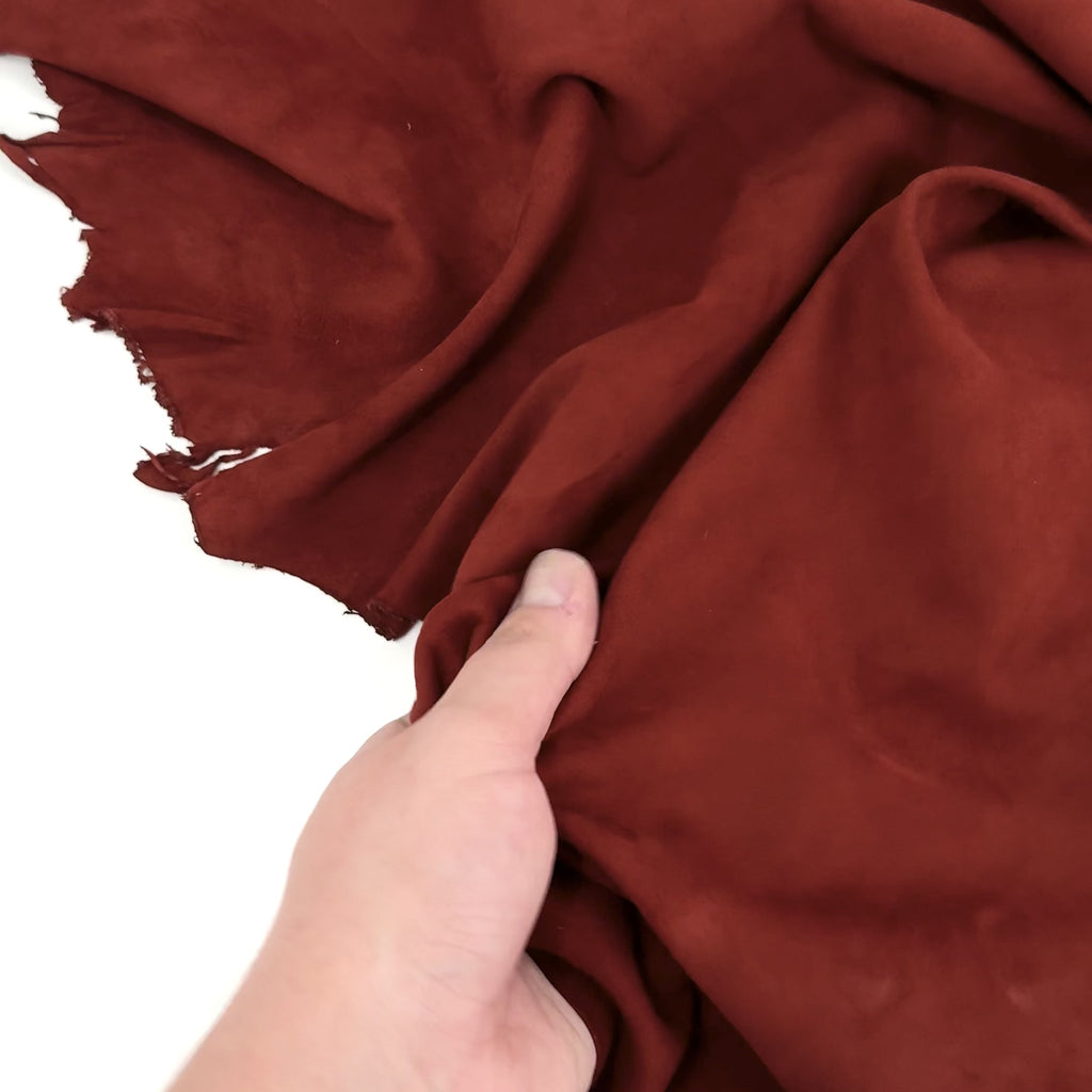 The skins are naturally smaller, typically ranging from 4 to 5 square feet, but their fine, uniform grain makes them ideal for high-end projects that demand precision and finesse. Renowned in the luxury fashion world, Italian goat suede is a favorite for couture garments, bespoke gloves, refined footwear, and premium leather goods.