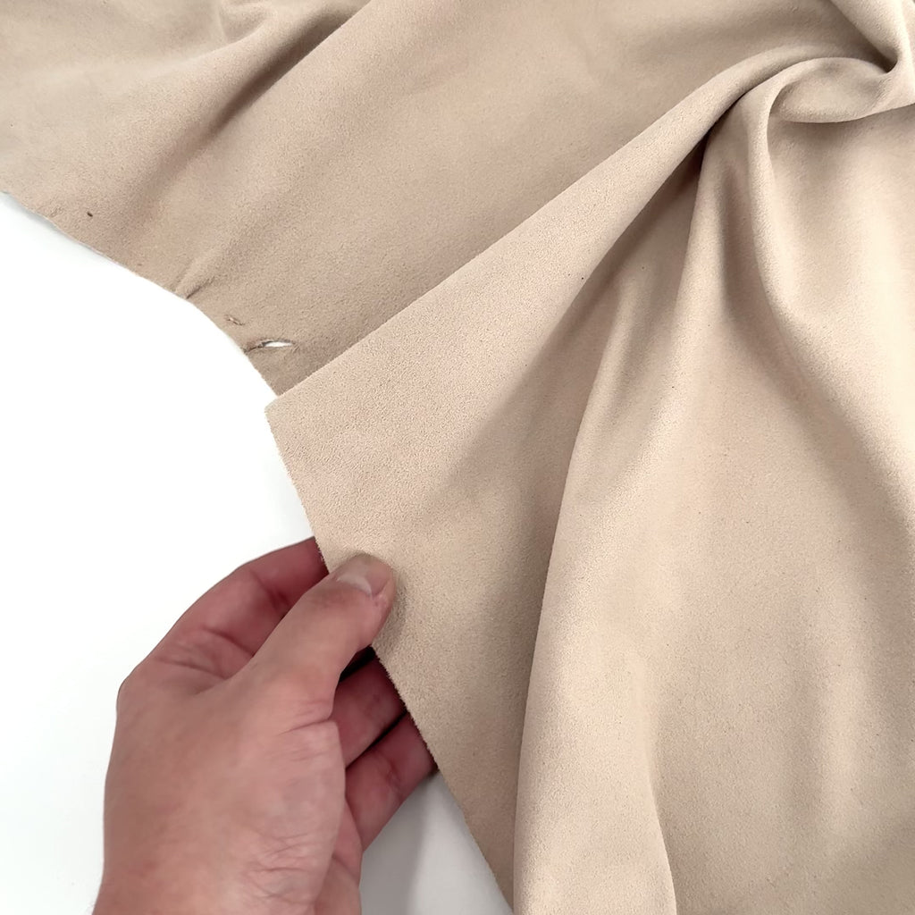Italian goat suede is widely regarded as the finest, most supple suede available, celebrated for its exceptional softness, lightness, and refined appearance. Crafted in Italy using select Metis raw material - a rare crossbreed of goat and lamb - this suede combines the best qualities of both animals. The result is an exquisitely smooth nap with a buttery hand feel, offering unmatched comfort and elegance in any application.