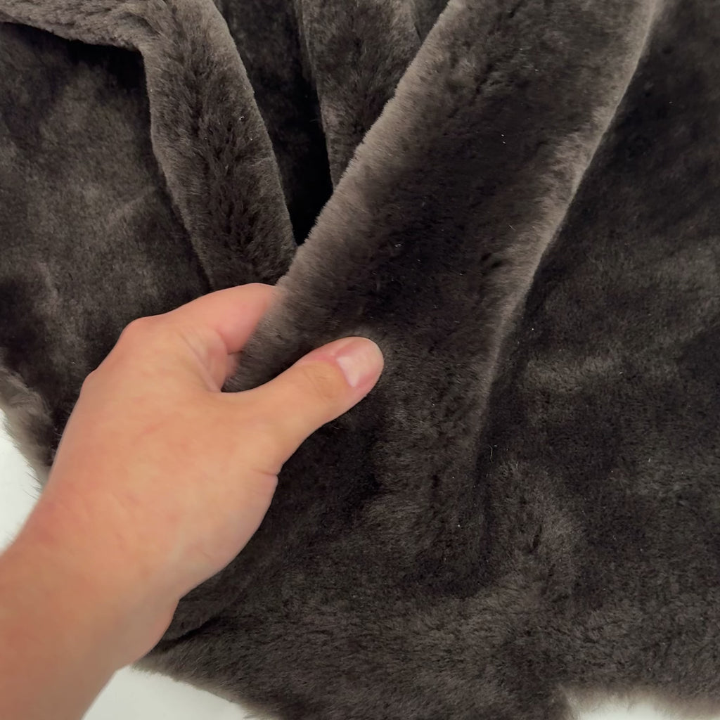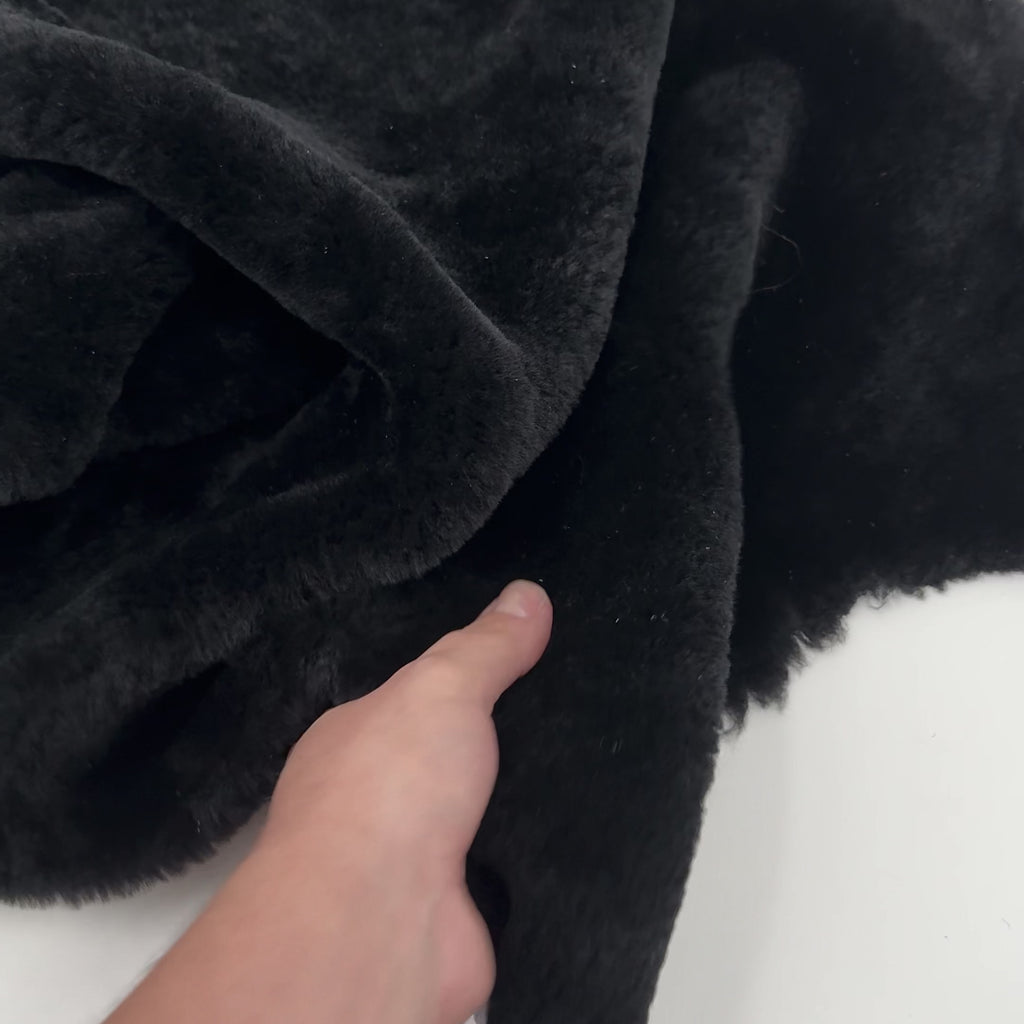 The Kodiak Shearling is crafted from premium sheepskin with the wool left intact. Large merino hides are carefully ironed to straighten the fibers while preserving their plush, ultra-soft texture and naturally dense hair. As a luxurious short-fur shearling, Kodiak is perfectly suited for coats, collars, trims, and even for the body of soft bags. The reverse leather side is finished in a contrasting color, emphasizing that this quality is designed for single-sided use rather than as a reversible shearling.